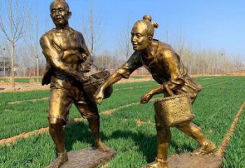 公園景區(qū)玻璃鋼仿銅園林農(nóng)耕人物情景小品
