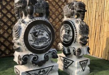 古典巴洛克風(fēng)格石雕黑色大理石門口抱鼓