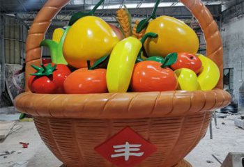 新款玻璃鋼彩繪大型水果籃采摘農(nóng)場戶外小品擺件