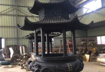 古典雙龍青銅香爐擺件
