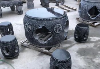 仿古青石圓形庭院浮雕缸雕塑
