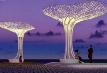 該景觀雕塑以滿足公共空間休憩需求為出發(fā)點(diǎn),巧妙運(yùn)用不銹鋼打造坐凳。不銹鋼材質(zhì)具有現(xiàn)代感與耐用性,契合景觀雕塑對(duì)材質(zhì)美觀與實(shí)用性的雙重要求。坐凳的箱體部分采用鏤空工藝,形態(tài)多樣的鏤空?qǐng)D案,為原本簡(jiǎn)潔的不銹鋼結(jié)構(gòu)增添了藝術(shù)感與靈動(dòng)性。內(nèi)置的燈光設(shè)計(jì)是點(diǎn)睛之筆,當(dāng)夜幕降臨,燈光透過(guò)鏤空處,在地面投射出如星光般的斑駁光影,使坐凳不僅是供人休息的設(shè)施,更成為夜間景觀中富有詩(shī)意的存在。它將實(shí)用的坐凳功能與藝術(shù)化的景觀營(yíng)造相融合,讓人們?cè)谛蓓瑫r(shí),既能感受不銹鋼材質(zhì)帶來(lái)的現(xiàn)代質(zhì)感,又能沉浸于光影交織的藝術(shù)氛圍中,為公共空間注入了獨(dú)特的活力與美感。